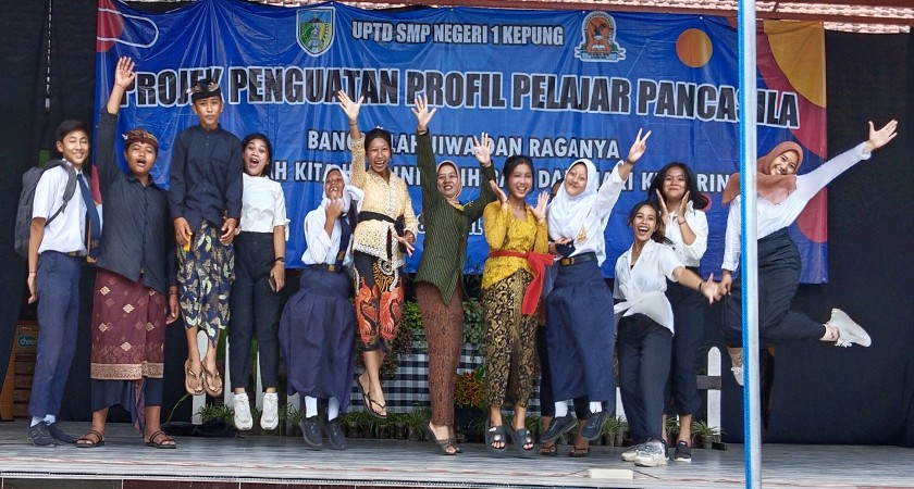 Profil pelajar Pancasila yang ditekankan melalui kegiatan pembelajaran di sekolah baik intrakurikuler maupun ekstrakurikuler dikuatkan lagi di dalam kurikulum merdeka melalui kegiatan Projek Penguatan Profil Pelajar Pancasila (P5). Demikian juga di UPTD SMPN 1 Kepung, kegiatan projek dilaksanakan pada tahap awal karena kegiatan projek belum menjadi kebiasaan dan masih sebagaian kecil pendidik yang melaksanakan pembelajaran berbasis projek. Sehingga dalam tahap ini dilaksanakan kegiatan P5 sebagai latihan pembiasaan serta proses belajar bersama antara pendidik dan peseta didik dalam menyongsong perubahan dan perkembangan dunia dalam segala aspek kehidupan.
